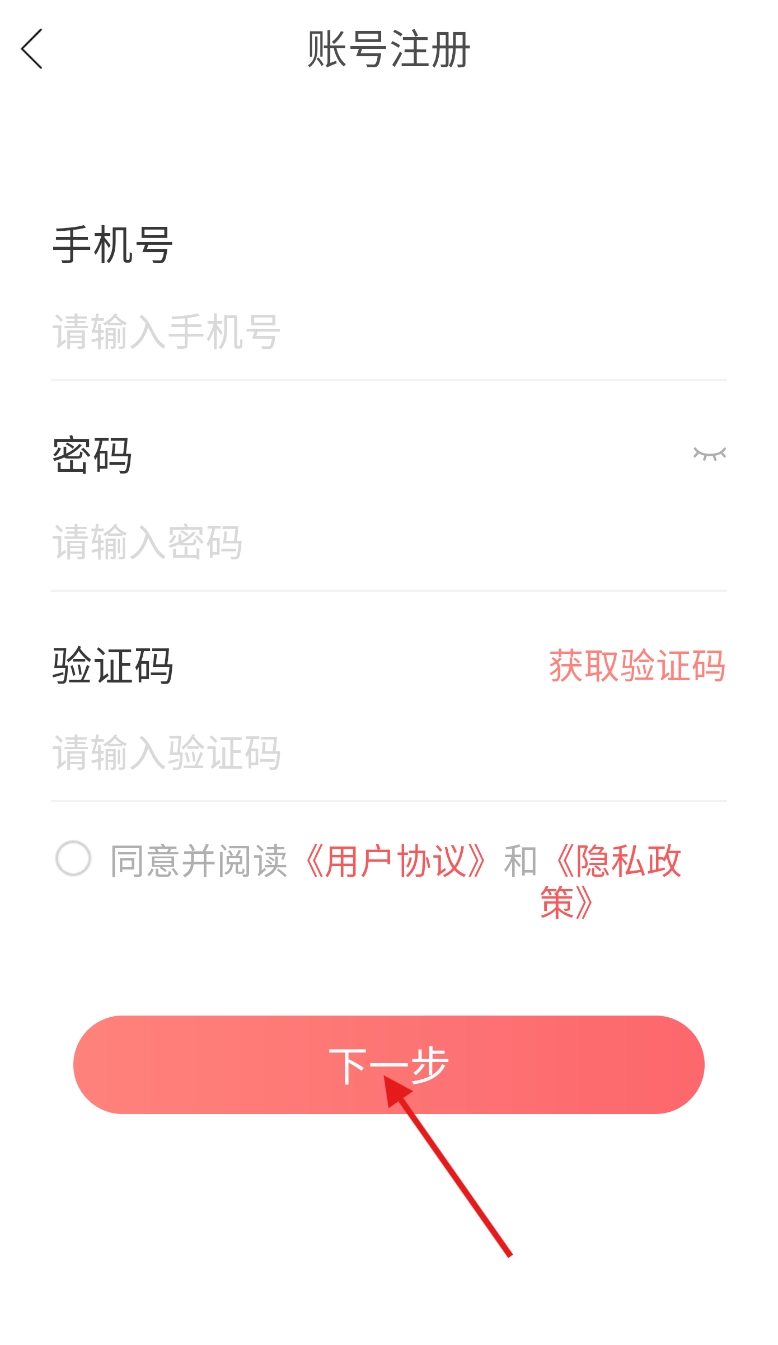 2. 在注册页面,按顺序填写手机号、设置密码并输入验证码。确认信息准确无误后,点击“下一步”,即可完成注册。