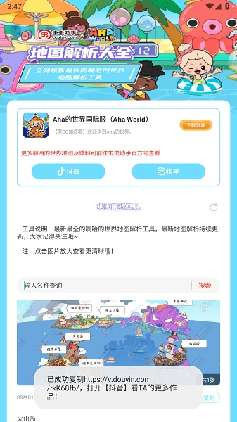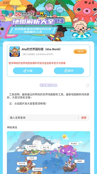 虫虫助手的阿哈世界地图解析工具,能助力玩家更深入地熟悉游戏地图,提升游戏体验,还提供丰富的攻略内容,堪称《阿哈世界》游戏的得力助手。
