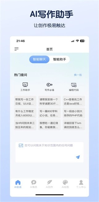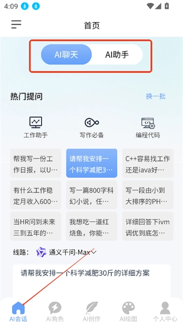 开启AI会话功能,提供AI聊天与AI助手两种模式,支持自由切换。