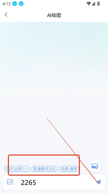 来到AI绘画的文本框处,在此能够输入关键词,设定风格、图片比例等参数,随后点击“生成”按钮。
