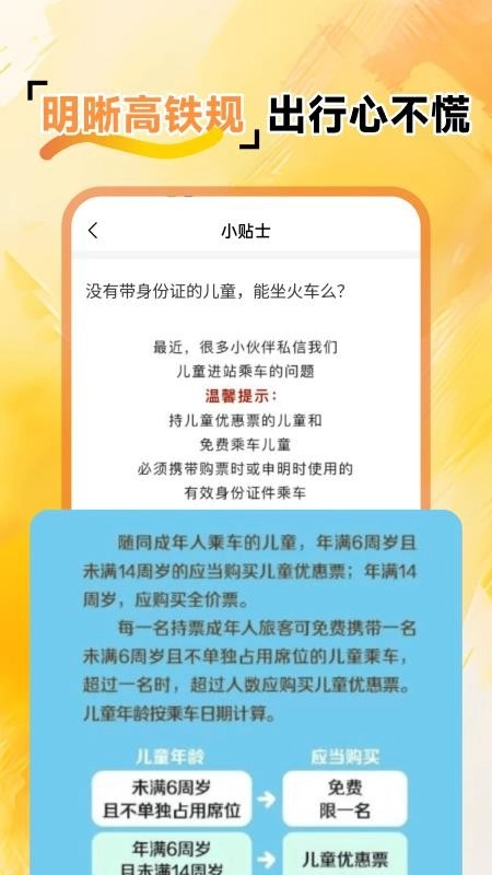 可以一键查看出行小贴士,更好地掌握出行注意事项,从而明晰高铁相关规定。