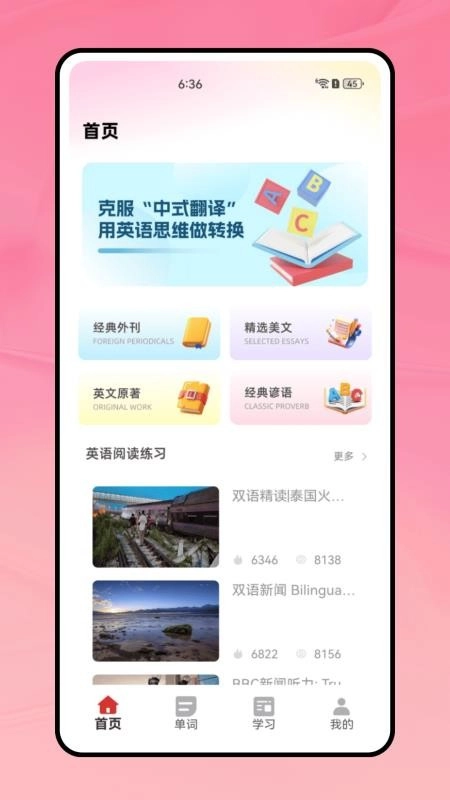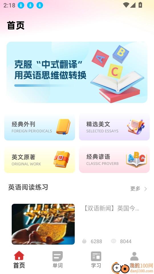 支持用户利用英语外刊与经典谚语资源开展阅读练习,自由畅享英文原著阅读,同步获取实时外刊内容。