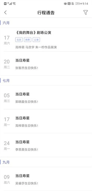 可以查看最新的演出、公开课、生日公演、签售会等活动信息,还能及时获取偶像的最新动态。