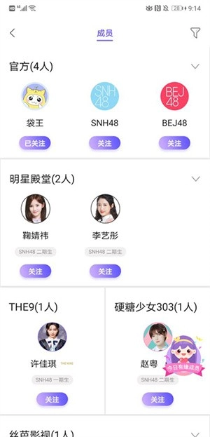 进入口袋48后,你能够查看各个分组的成员信息以及相关活动。