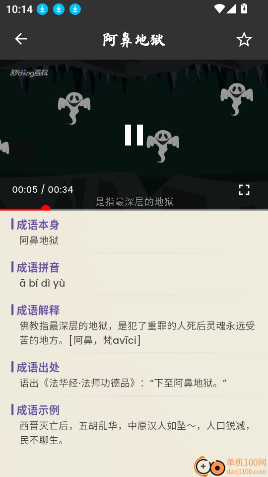 之后就能观看成语的视频讲解,查看其详细解析了。
