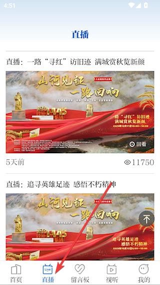 live专栏,能在线实时观看最新新闻,还支持回放功能
