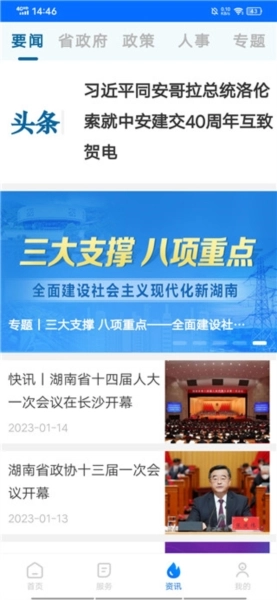资讯版块实时展示省委省政府的重大决策部署、重要政策,还有重点民生实事的工作成果等内容。