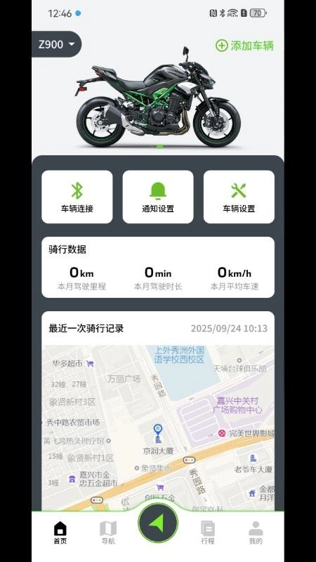 添加绑定摩托车后,通过蓝牙连接使用该摩托车,能够便捷地实时追踪并记录骑行数据。