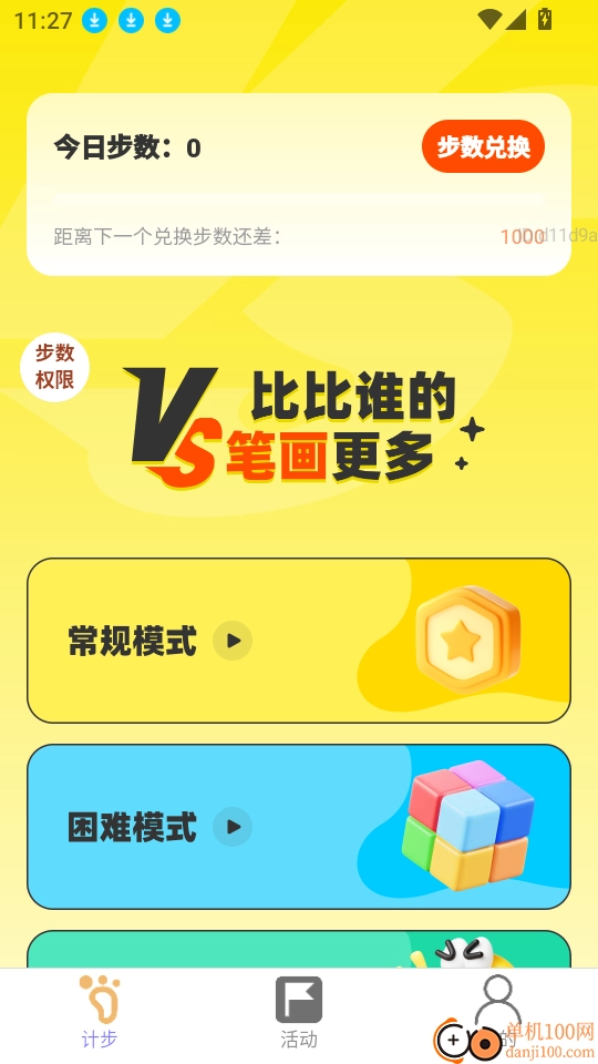 进入软件的计步界面后,在底部菜单栏里点击“活动”功能按钮,即可进行下一步操作。