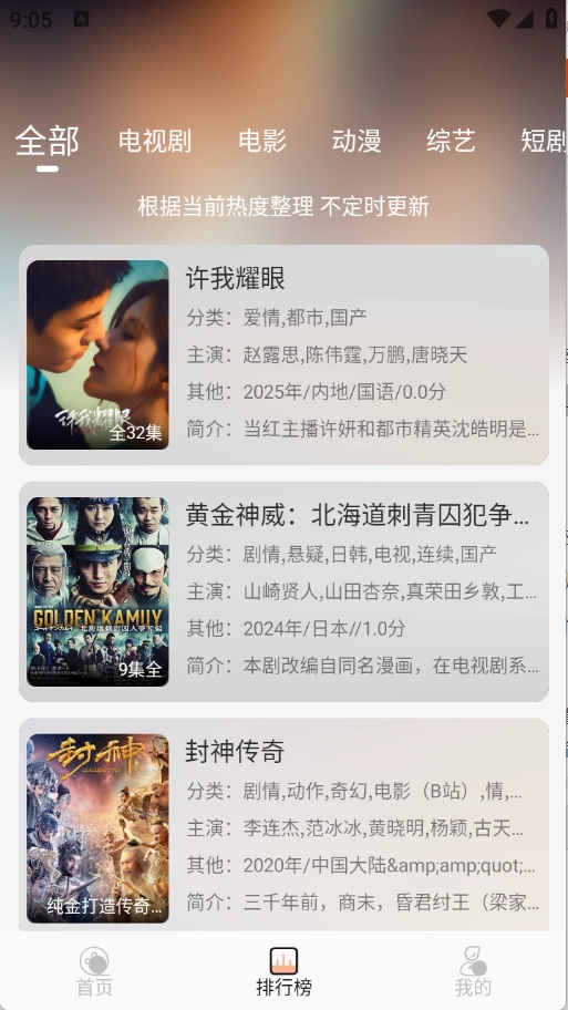 排行榜根据当前热度将影视进行了排序。