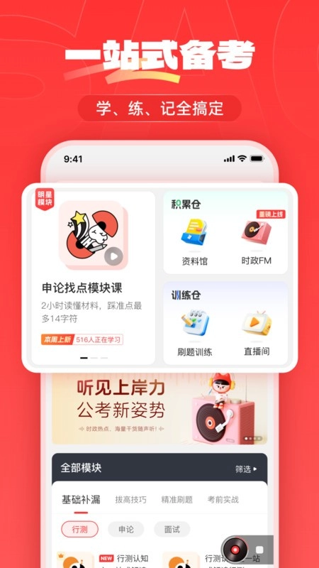 上岸仓全新版本来袭!课程不仅实用性超高,种类更是丰富多样。无论你想针对哪方面学习训练,都能满足。直播课程实时互动,行测、申论、面试资料课程与题目一应俱全。更有申论批改服务,堪称考公备考路上的不二神器!