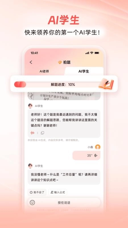 在应用里就能领养一名AI学生,还能给学生出题,既能培养学生的能力,也能提升自身实力。