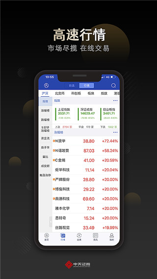 兼具普通交易和闪电交易,普通股票包括股票买卖、新股申购、基金申赎、债券回购、银证转账、账号查询、融资融券等交易功能满足您的投资所需;闪电交易,用可在个股分时页快捷下单,节省超过30%的下单时间,交易快人一步。