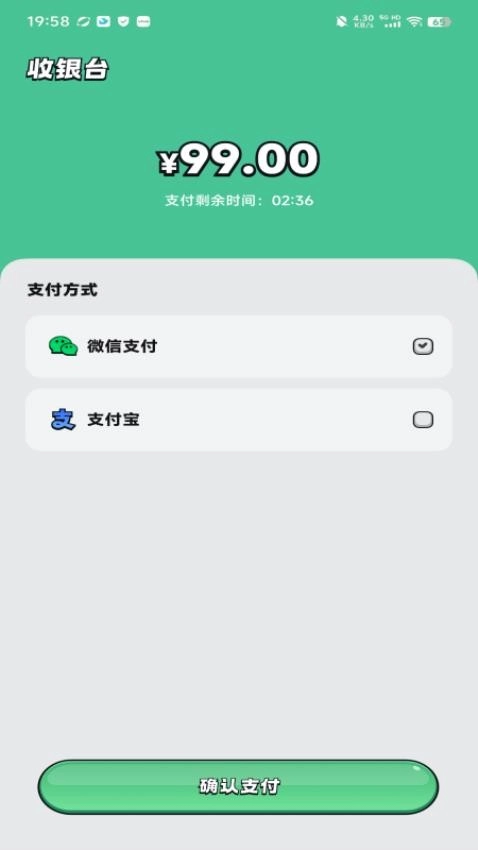 用户可根据自身使用需求,自主选择微信或支付宝进行结算,操作便捷直观,轻松完成支付流程。