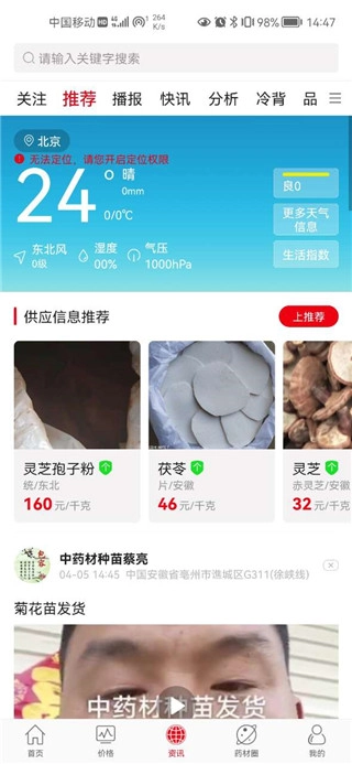 进入首页后,这里可供采购的药材种类丰富,并且均为一手货源。