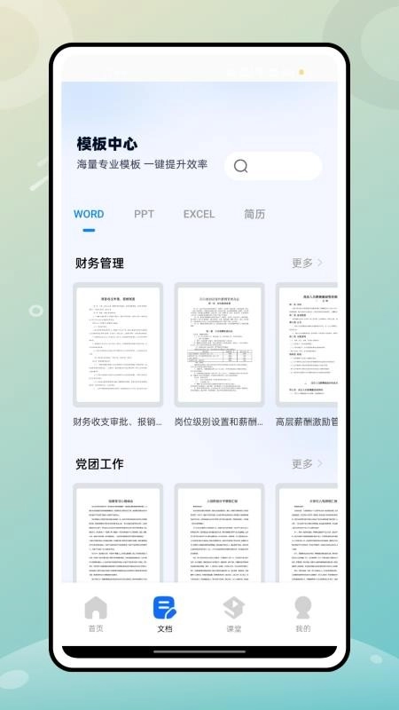在模板中心里,你能看到各种各样的模板资源,可供随心挑选使用,轻松完成文档和PPT的制作。