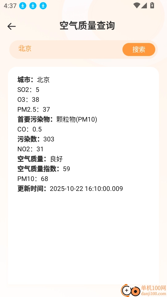 这样就能看到自己所查询城市的空气质量数据,进而进行详细查看了。