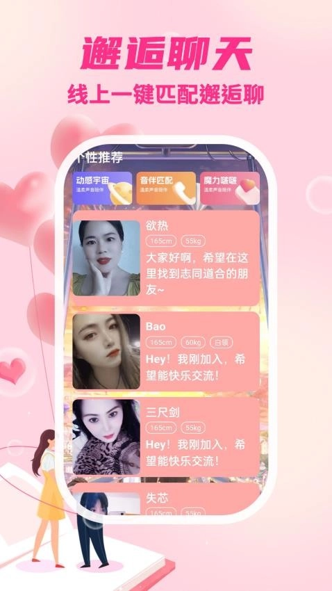 即时聊天,在线匹配,探寻有趣的灵魂,告别无聊。