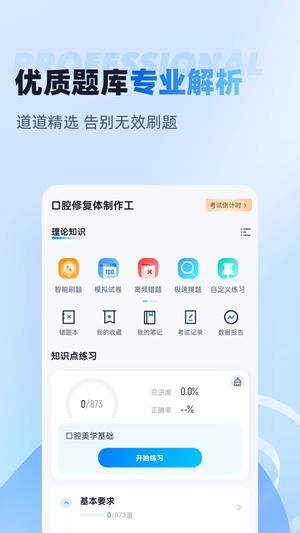 口腔修复体制作工考试题库学习软件,拥有丰富的题库资源,支持用户在线练习与模拟考试,能帮助用户实时掌握自身学习进度与水平,使用体验良好,欢迎感兴趣的朋友前来体验!