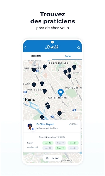 doctolib的移动应用能让你更便捷地管理自身健康。doctolib是法国的医院预约服务平台,主要为患者提供预约附近医生的服务,同时帮助医生管理预约订单,其运营模式和美国的zocdoc类似。