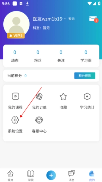 切换到医东软件主页下方的“我的”界面,然后点击系统设置。