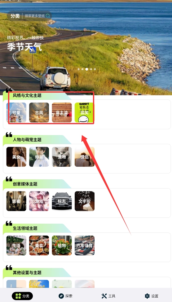 1. 壁纸分类既细致又全面,涵盖从抽象艺术到自然风光等各类题材,用户能够依据颜色、主题或者热度进行筛选,从而迅速找到契合自身喜好的内容。