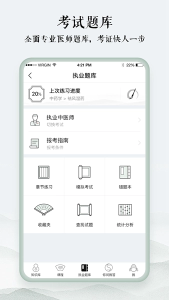 全部中医类考试题库,几十万道题,助您早日走上执证道路。