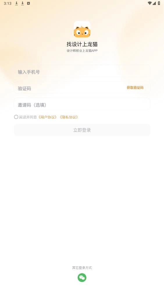 打开龙猫设计,输入手机号,验证码,登录软件