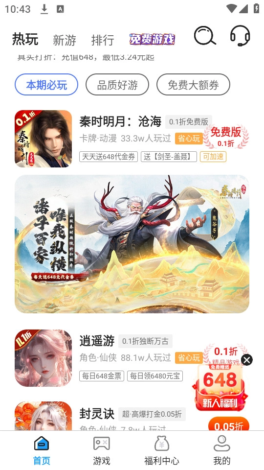 提供游戏充值折扣,最低可高达1折,可获得各种大额福利。