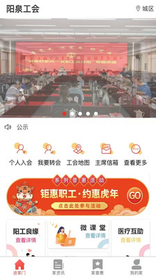 阳泉市总工会打造的移动服务端,始终秉持用心服务阳泉职工的理念,为广大职工提供文体活动参与、教育培训学习、普惠服务享受、法律咨询援助、帮扶救助申请、新闻资讯阅读以及婚恋交友互动等一系列实实在在的服务内容,致力于为阳泉职工群众构建一个优质的网上职工家园,让大家能够便捷地享受到“指尖上的工会”所带来的高效、贴心服务。
