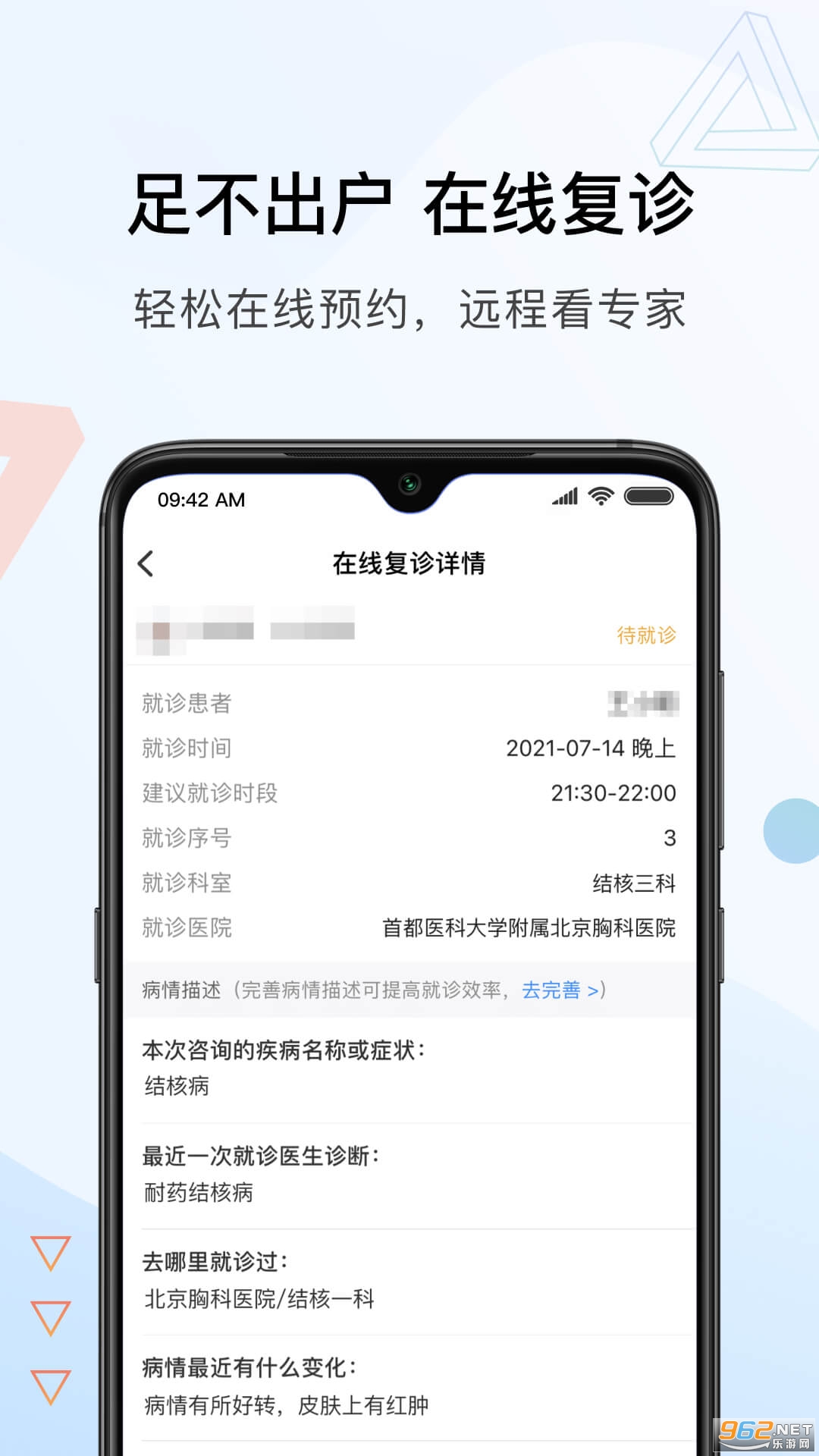 在线复诊:简单几步完成线上预约,无需出门就能远程咨询专家。