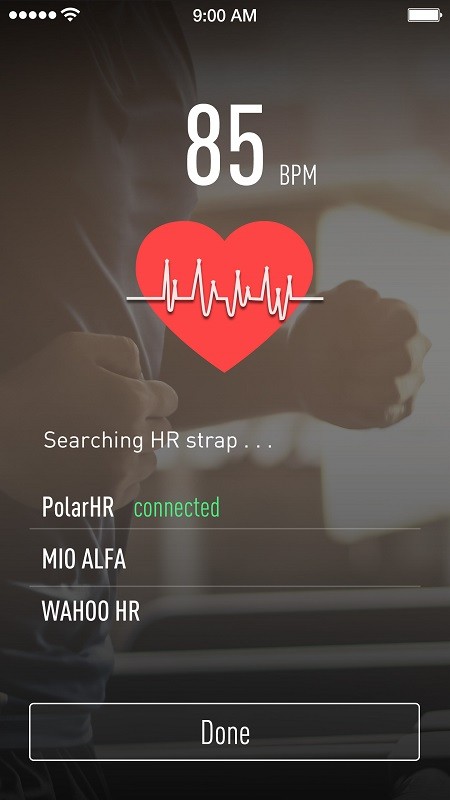 这个应用程序必须搭配兼容的健身自行车、椭圆机或跑步机使用,且这些设备需具备蓝牙低功耗(BLE)接收器。
