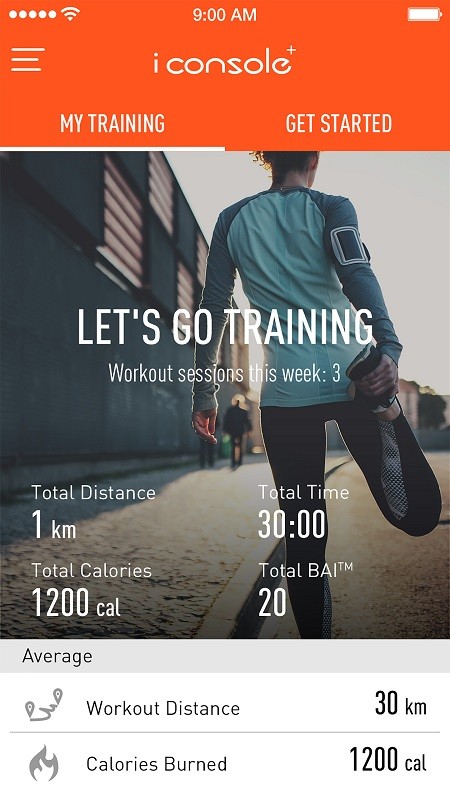 iConsole + Training是iConsole推出的全新应用程序,它具备更详尽的培训数据展示、更简洁的培训模式,还能与标准BLE心率监测仪(HRM)相集成。使用该应用程序需搭配带有蓝牙低功耗(BLE)接收器的兼容健身自行车、椭圆机或跑步机。