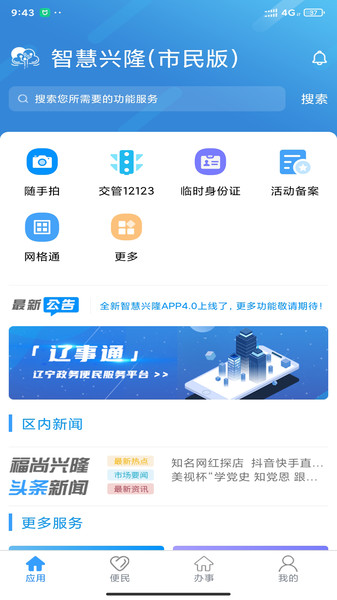 “智慧兴隆”是一款面向大众的生活便民服务软件,用户可以通过它及时获取最新的本地资讯与国家新闻,同时还能享受到涵盖便民、政务、生活等多方面的服务功能,助力大家畅享智慧便捷的生活体验。