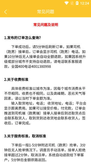 下单后,司机(跑男)通常会在1-5分钟内抢单;若3分钟后仍无人抢单,调度员将手动派单。若接单人拒绝接单超过2分钟,系统会取消派单并自动向客户退款,退款金额一般在5分钟内原路返回。