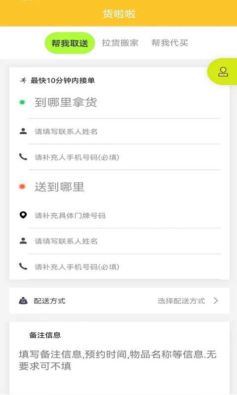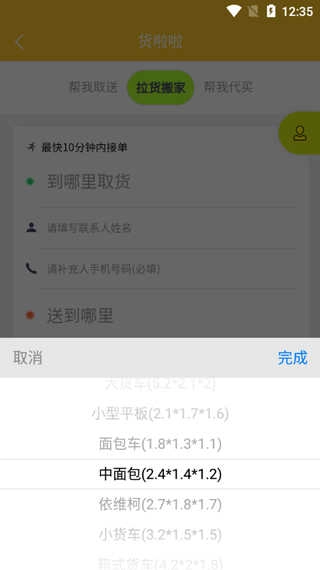打开软件后,就能看到“帮我取送”“拉货搬家”和“帮我代买”三个功能板块。