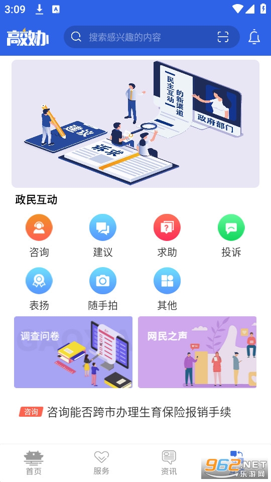 打造掌上咨询板块,提供多渠道投诉、举报服务以及随手拍等功能。