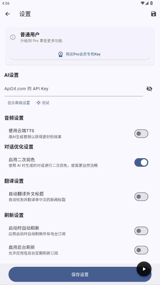 这款产品的核心优势在于个性化与智能化特性:用户能够依据自身兴趣搭建多个主题电台,系统会自动对新闻内容按重要性进行分级处理。不仅如此,它还兼容本地及云端两种语音合成模式,并配备音频导出功能,便于用户将制作完成的节目以播客形式发布。