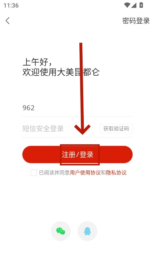 选择你所需的登录方式,例如小编选择手机号登录