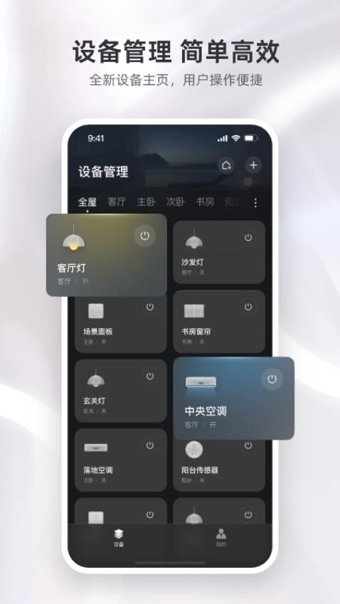 能实现多场景的区分管理,便于用户按房间对各类设备进行分别管理。