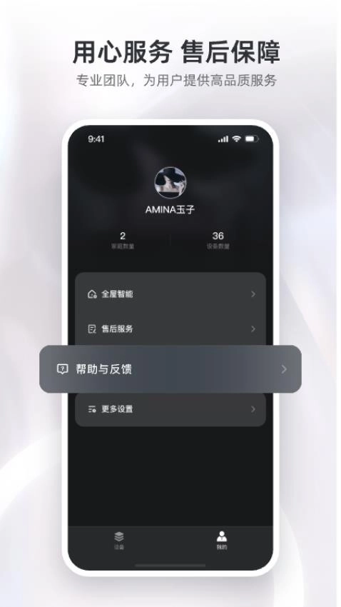 在个人中心里,你既能对全屋智能进行管理,也能享受到优质的售后服务。