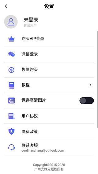 5、在设置中具备购买会员、微信登录、恢复购买等功能,同时能够查看相关使用教程。