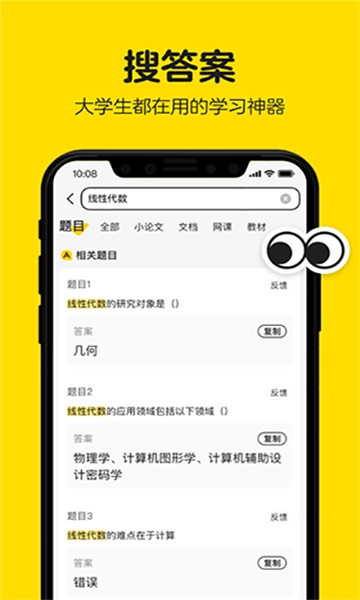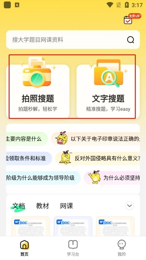 搜题、文档、网课、教材,一站式汇聚大学全部学习资料,一键搜索,所需内容应有尽有!