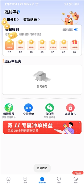 点击进入福利中心,用户可以在此领取各类福利优惠。