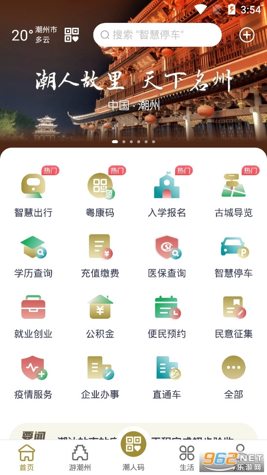 《i潮州》是由潮州智慧城市投资发展有限公司打造的潮州综合服务平台,市民朋友们能在这个平台上体验丰富多样的服务——像潮汐医保、公积金、学历等查询服务,智慧出行、智慧停车等生活服务,还可以便捷查看粤康码,为潮州本地居民的日常生活提供了不少便利。