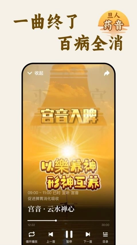 选择喜欢的药音播放,可以自由聆听释放压力