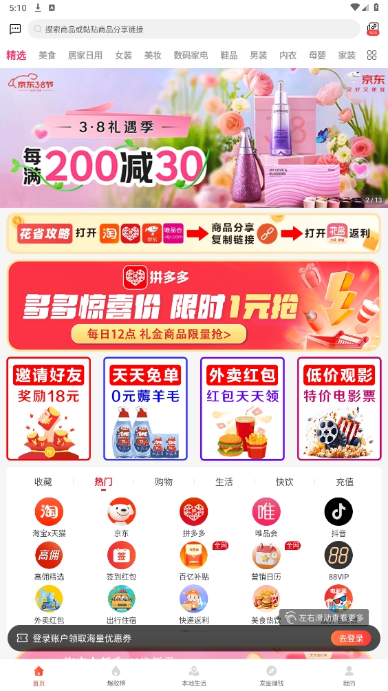 精选特惠商品,一键转发到社交圈,分享优惠券产品,创造收益。