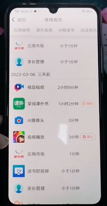 在“设备”页面的使用报告板块,能够查看平板应用的使用报告以及其他应用的学习情况等相关内容。