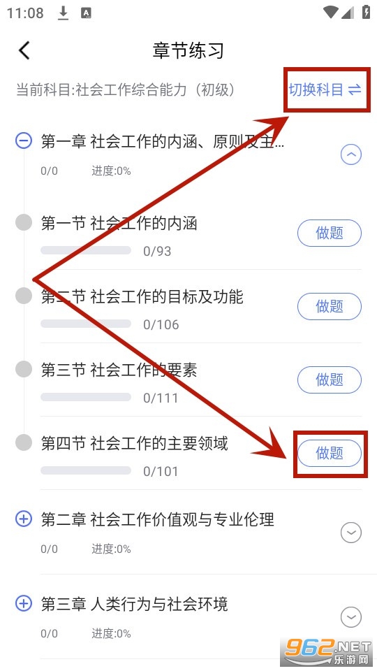 点击【做题】按钮即可开展做题学习,右上角还能切换不同科目。