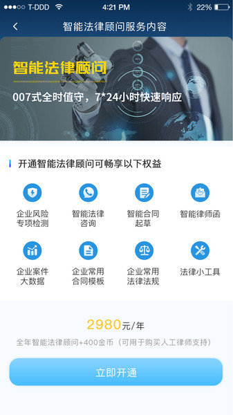 云律通法务管家是普罗天网(北京)科技有限责任公司开发的企业服务软件,主要功能包括为企业提供法律咨询、法律体检服务。它能够依据用户提供的数据,检测企业是否存在法律漏洞,操作便捷高效;同时,软件内还配备了多种实用的法律小工具,方便用户随时使用。